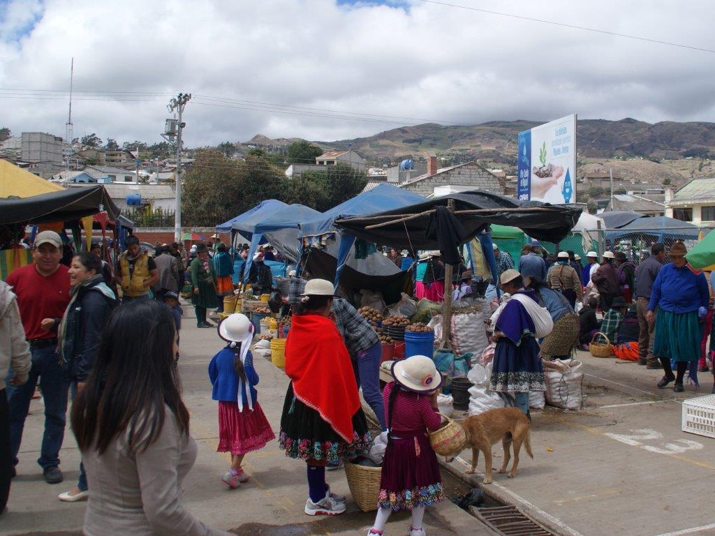 Le dimanche, visite du marché de Cañar, un vrai dépaysement ! Ville très accueillante, que de sourires partagés avec les cañaris !