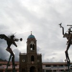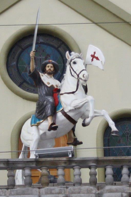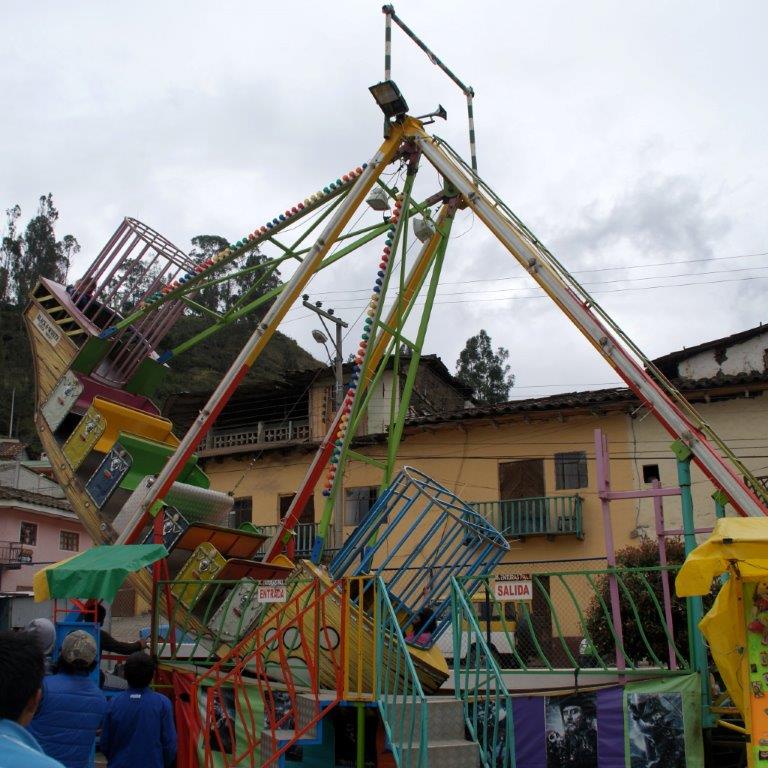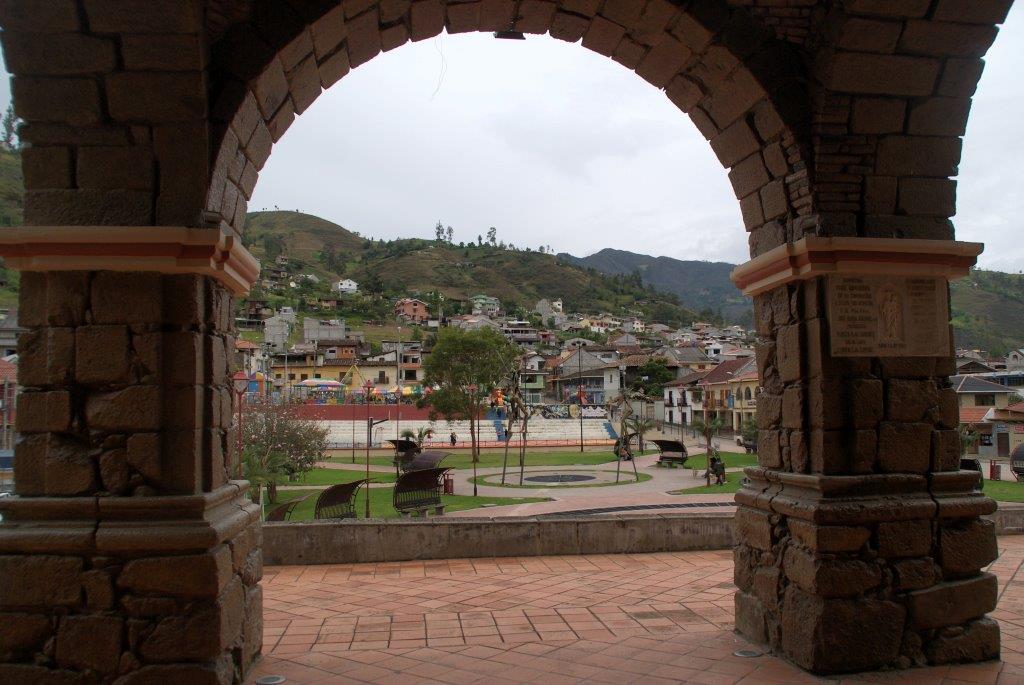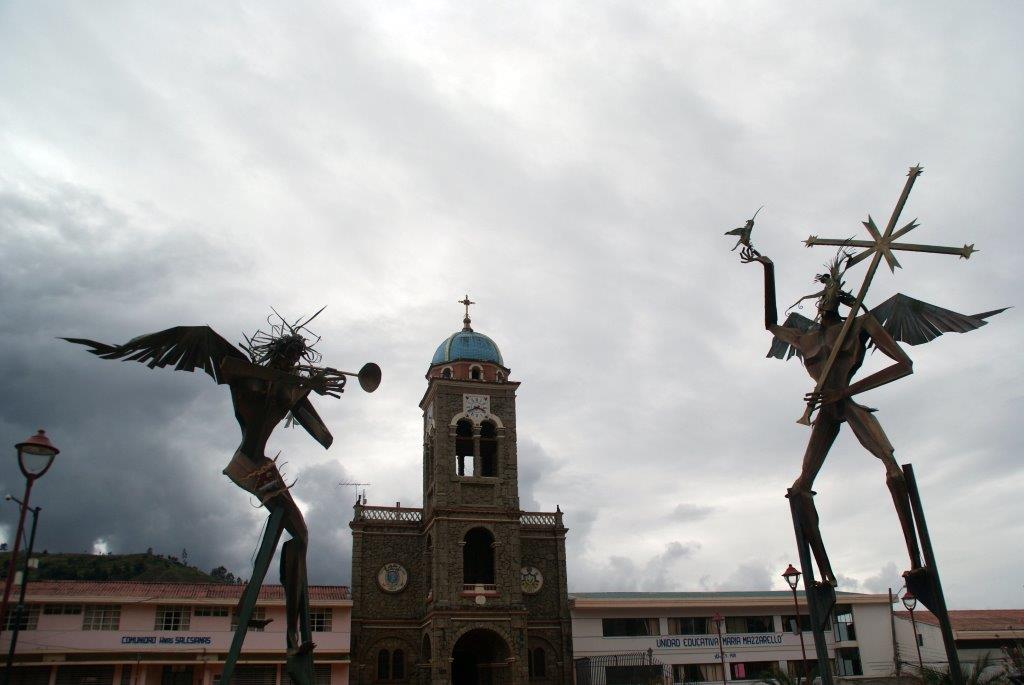 Sigsig est à 16 km au sud de Chordeleg. On n’en a pas vu grand chose. Il y avait une fête foraine sur la place, et Déodat n’a pas franchement apprécié le bateau. Les deux sculptures sur cette même place valent le coup d’œil ( 😉 à Audrey !).