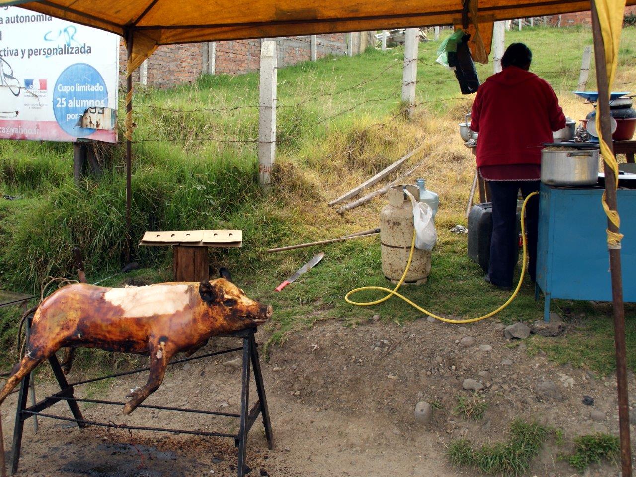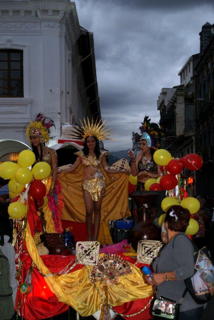 Nous sommes loin d’avoir tout vu des festivités du Carnaval en Équateur. Ce que l’on sait : c’est qu’il dure 5 jours, du samedi au mercredi des Cendres ; que les jours sont fériés (mais doivent être rattrapés); que c’est une période où on mange beaucoup et surtout du cochon (après il y a le jeûne du Carême !); et que le grand sport national, c’est de s’arroser !