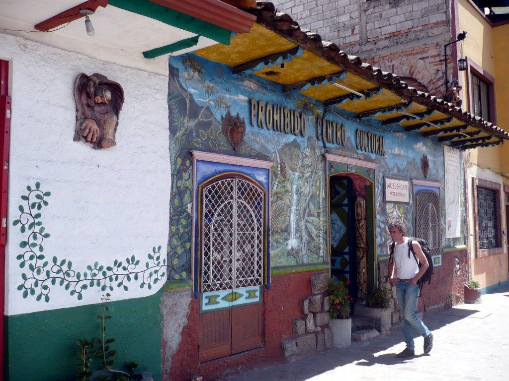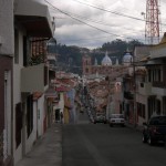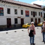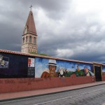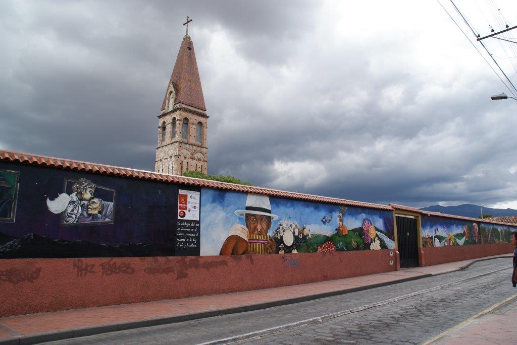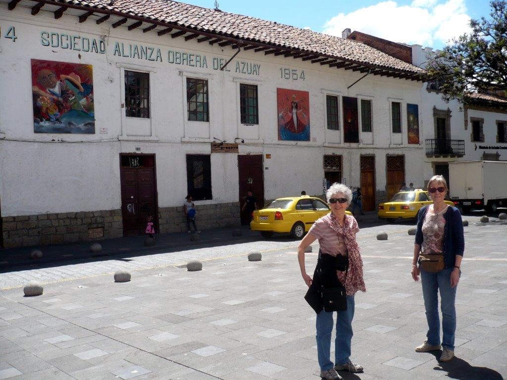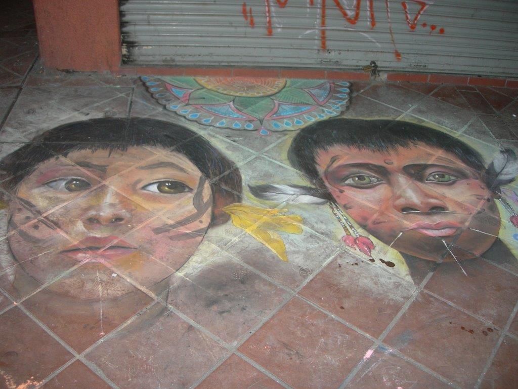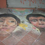 Une fresque sur le trottoir, calle Presidente Cordova, Cuenca