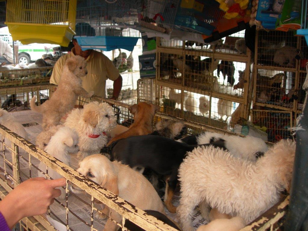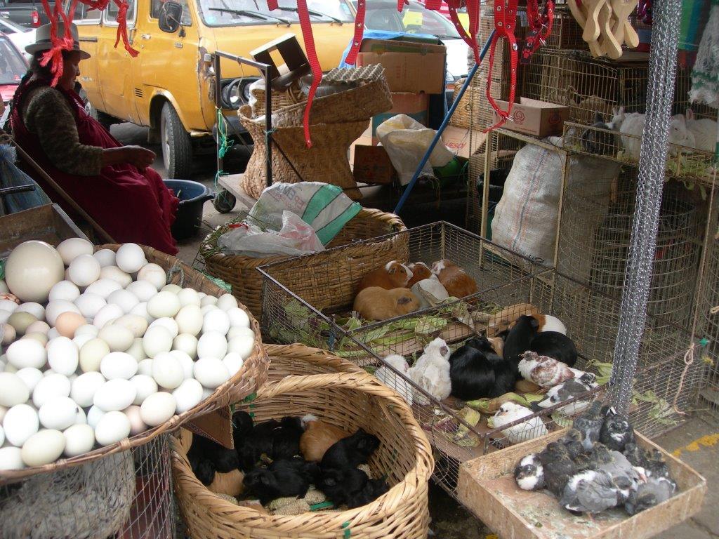 Le Marché Le grand marché de Cuenca : el mercado Feria Libre Los cuys (cochons dinde) pour la cuisine Les habits des chiens